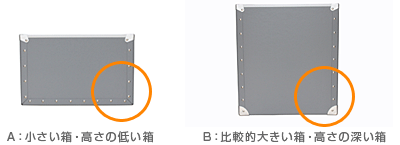 | フチ金具 ボックスサイズが | ![]() ![]() 強化タイプ: 鉄芯にパスコを巻き 付けた形状です。 | ||||||
